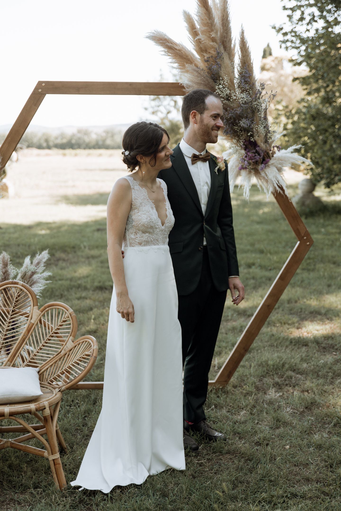 Notre arche de cérémonie hexagonale en bois massif fait partie de notre catégorie FAIT MAIN AVEC AMOUR pour vos événements.