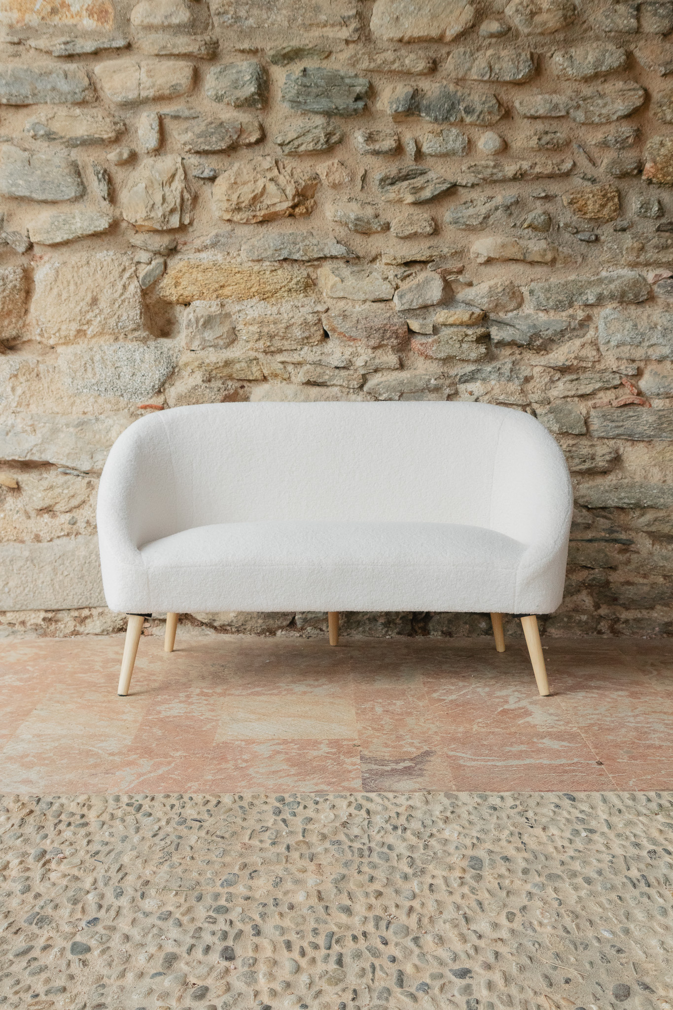 Matériaux : Tissu en bouclette & pieds en pin clair