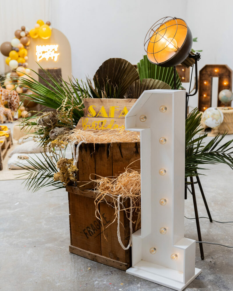 Les chiffres lumineux se branchent sur secteur, pensez à prévoir une rallonge si nécessaire. Nous fournissons le nombre d’ampoules nécessaires. Ce sont des ampoules au style vintage avec une lumière chaude.