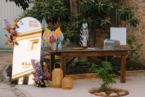 Disposez-le sur l’un de nos bureaux avec de jolies cartes postales ou bien des photos pour que vos invités vous laissent quelques mots !