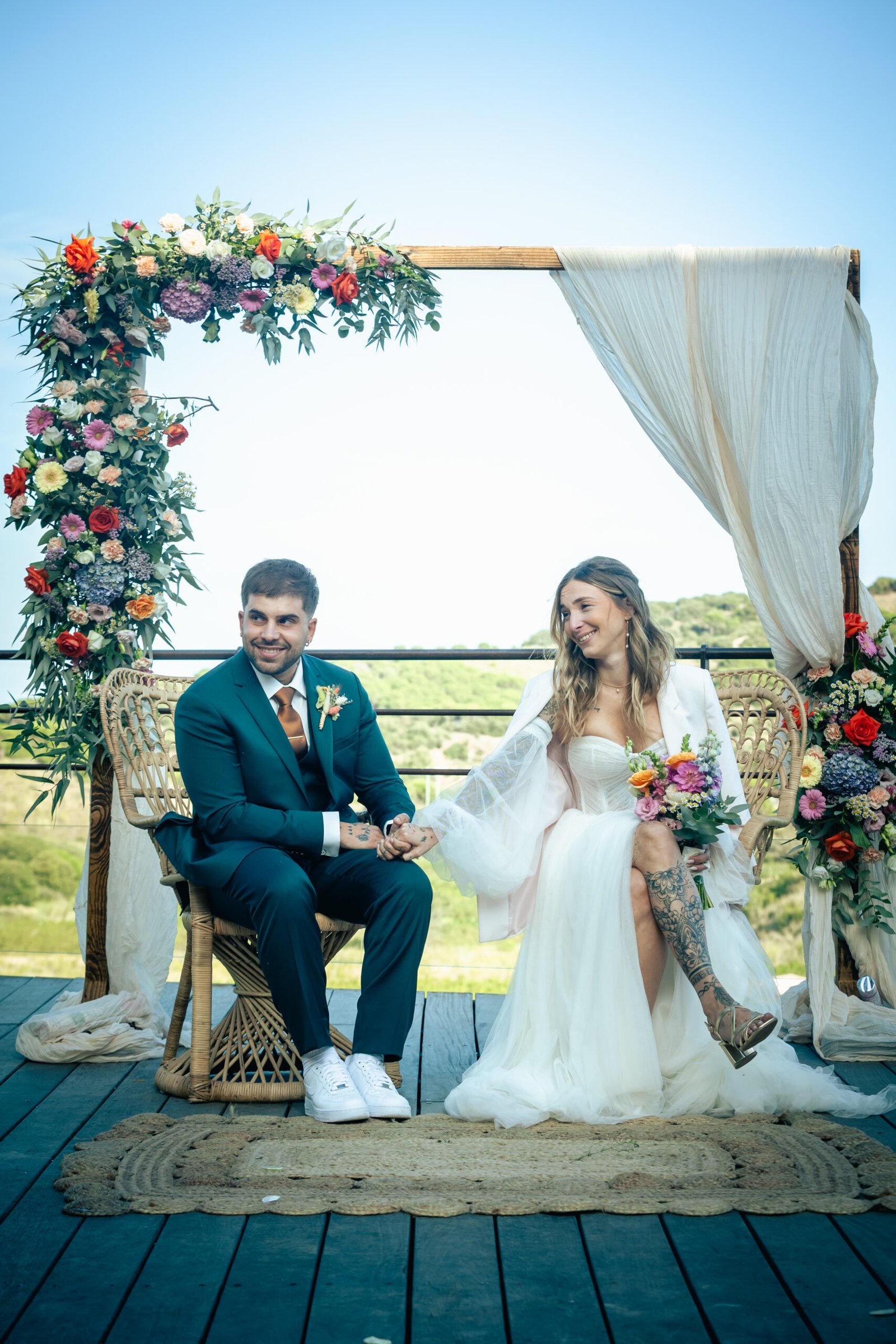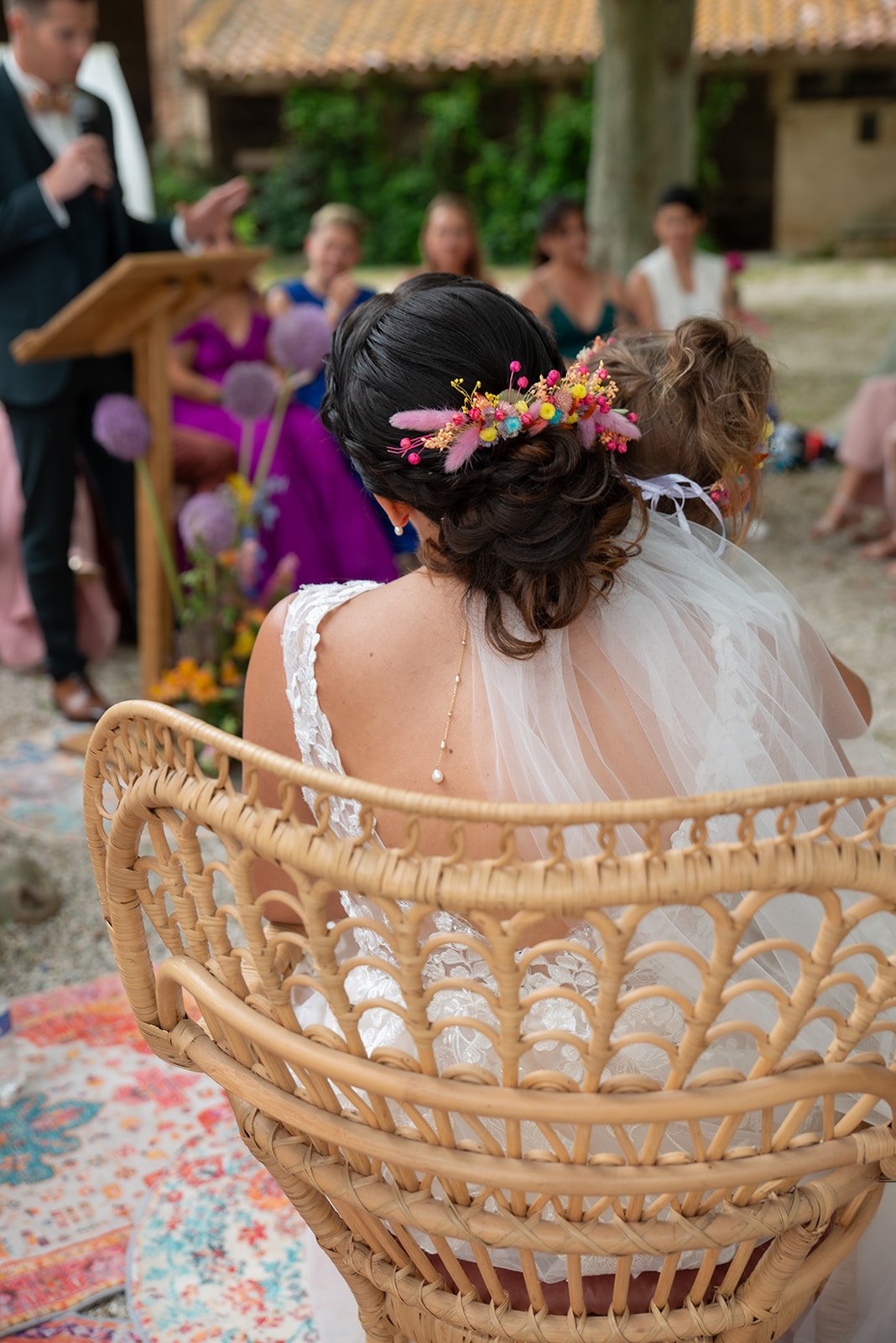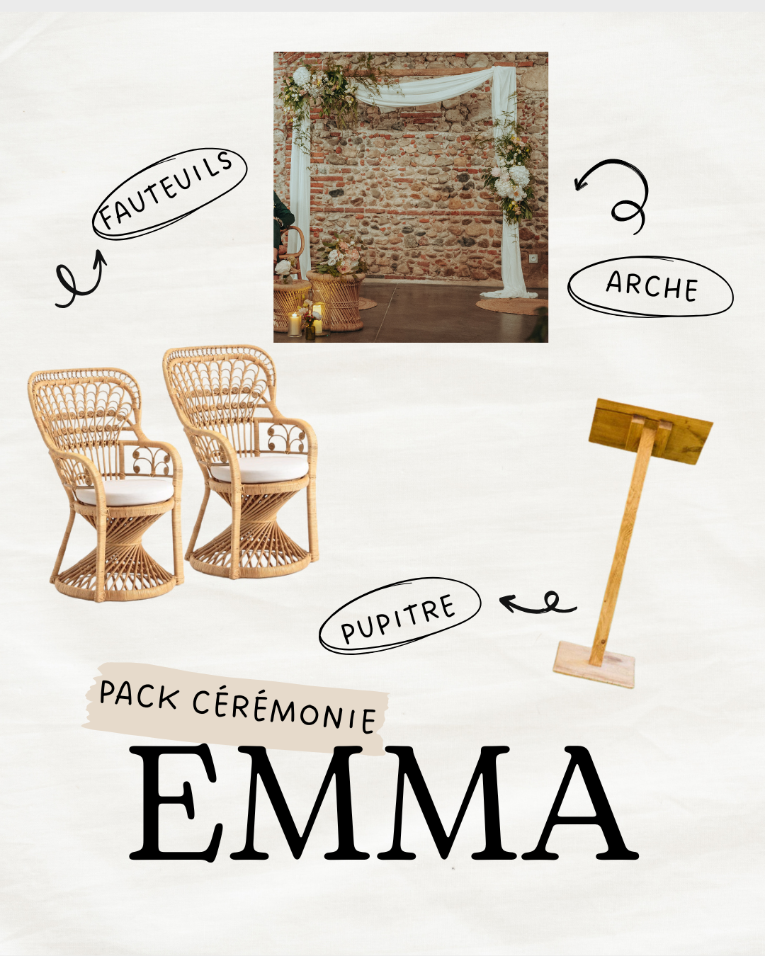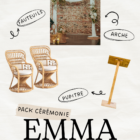 Structure classique et élégante, parfaite pour encadrer l’échange des vœux et créer un point focal fort.1 duo de fauteuils EMMA
